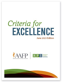 The AAFP Residency Program Solutions Criteria for Excellence is an industry-leading publication outlining best practices and policies in residency education.